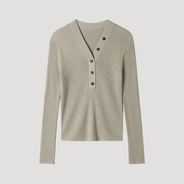 리브 브이넥 버튼 슬림 니트_SSKPOP12070_LK