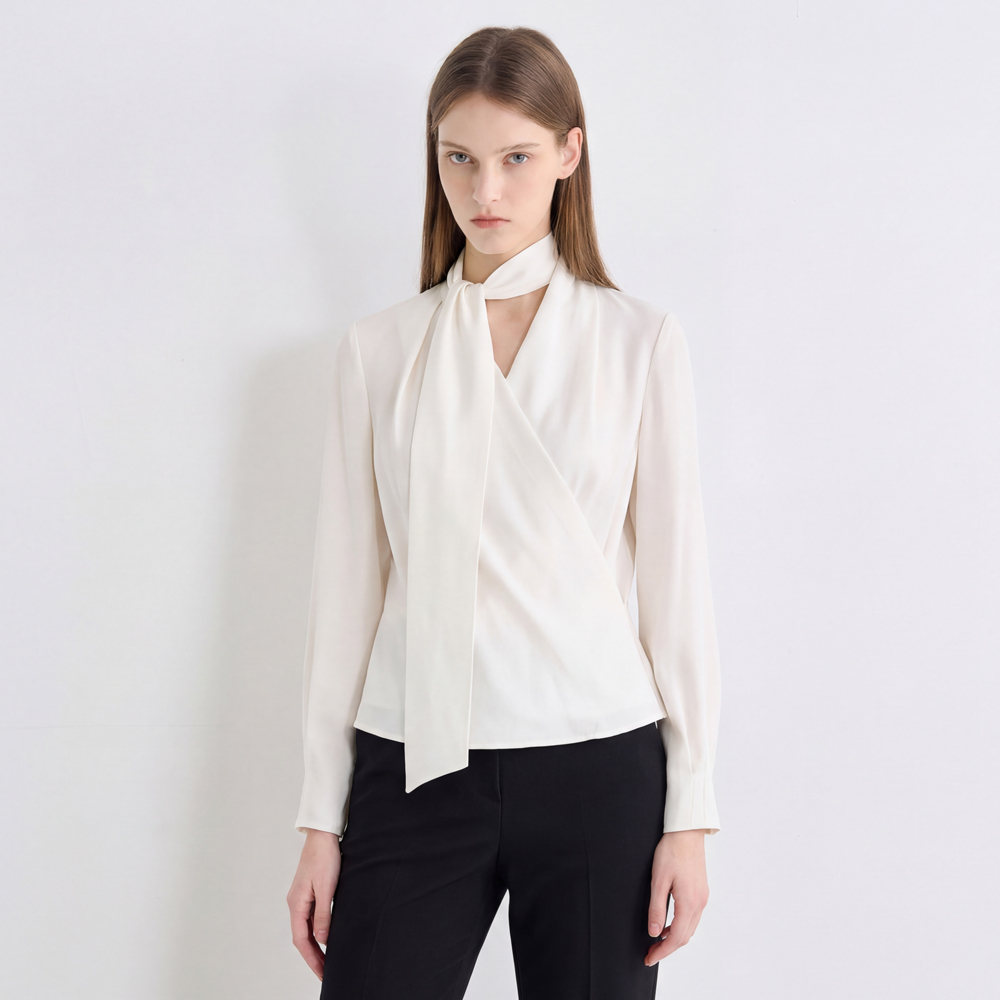 [데코] (본사직영) 타이 사선 실키 블라우스-FDBAF1101W