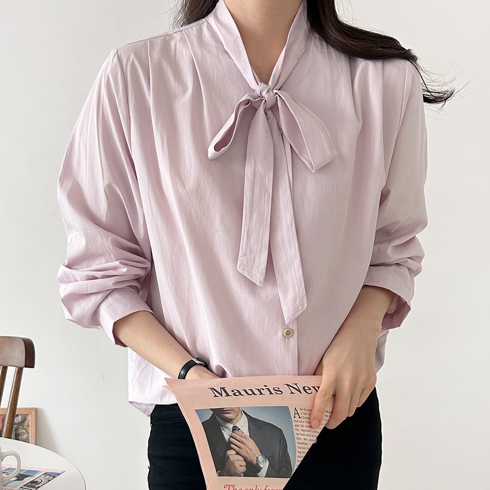 [샵앤] 여성 리본타이 어깨핀턱 베이직 정장 블라우스 21DS-WBL-4148-소라