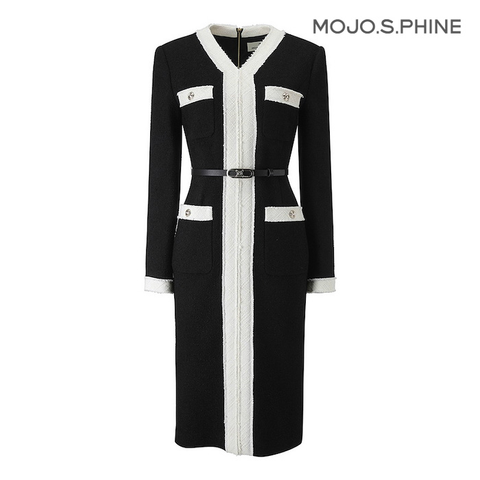 [모조에스핀] V넥 배색 H라인 원피스 BK_S244MSE027