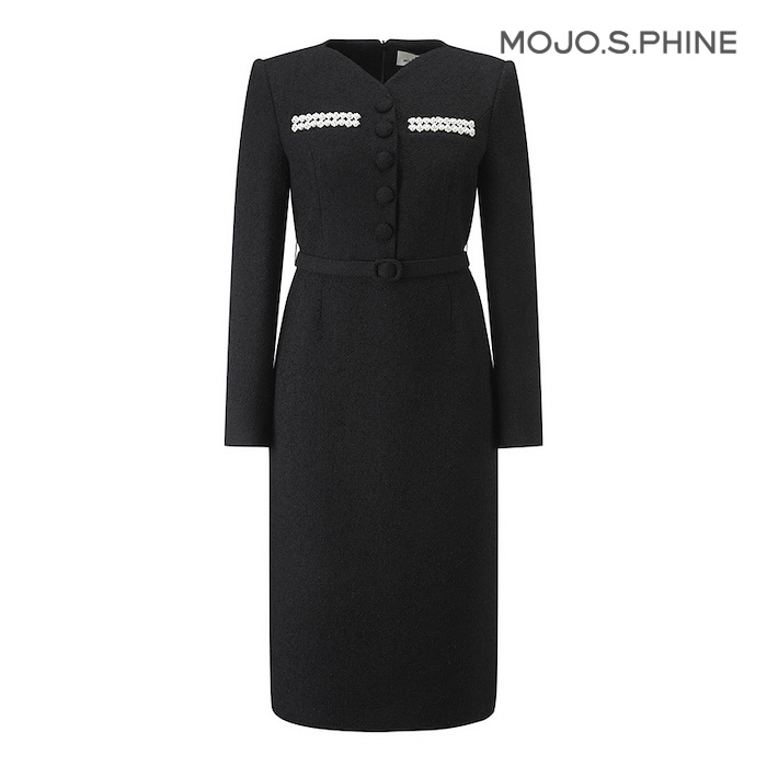 [모조에스핀] 진주장식 트위드 원피스 BK_S244MSE028