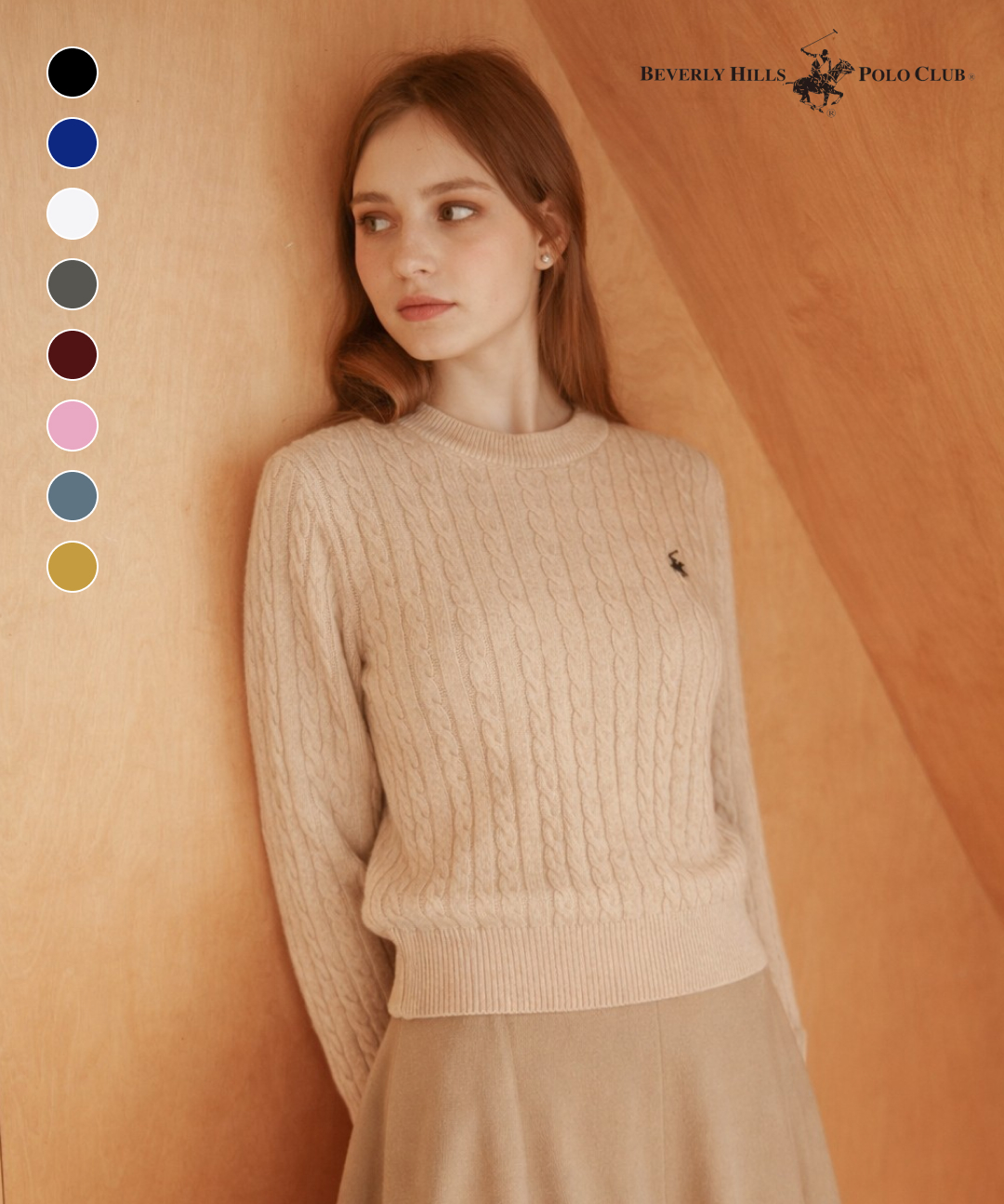 [비버리힐스폴로클럽]여성 비스코스 라운드넥 케이블 니트 TK319