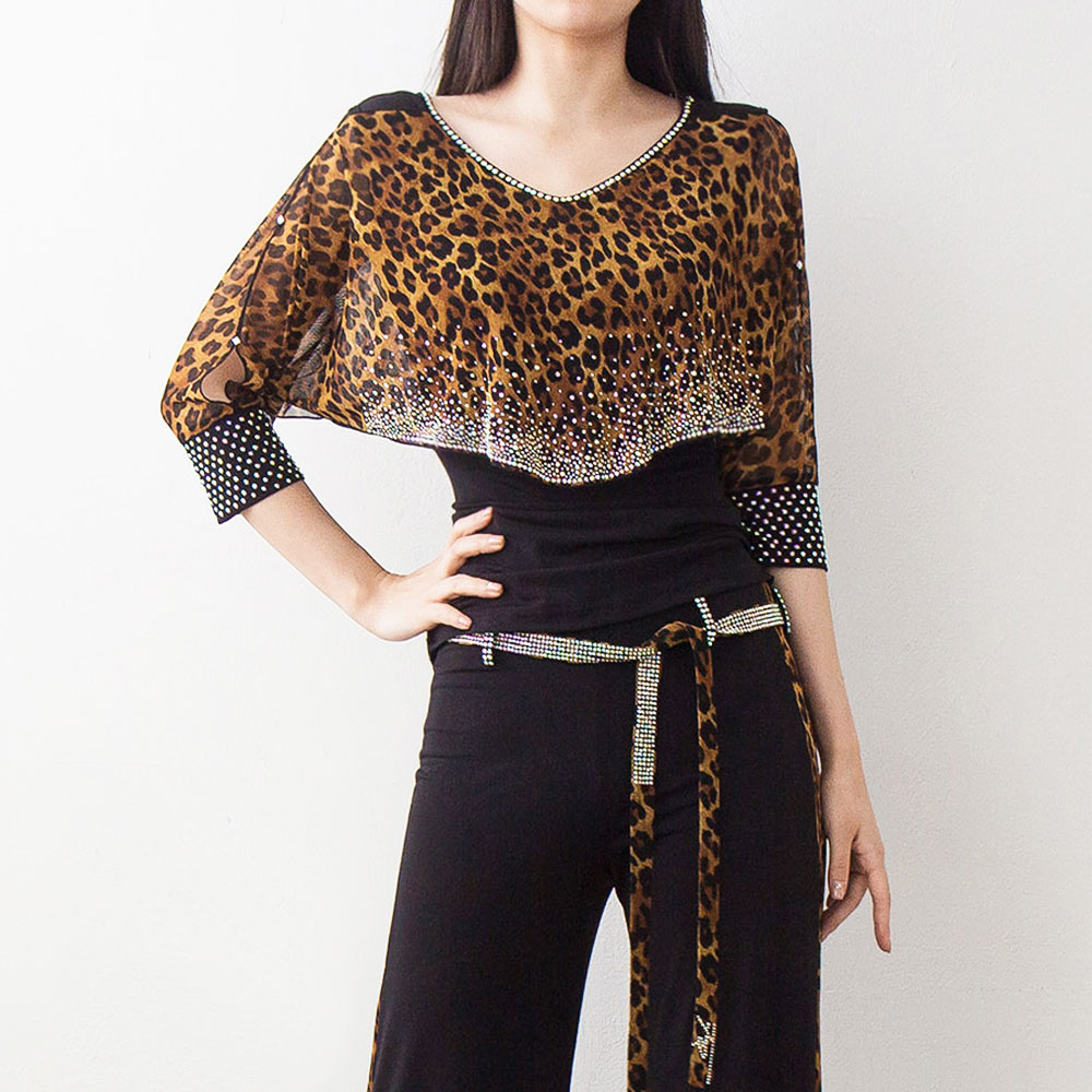 까르죠아 가오리 핏 호피 블랙 댄스 블라우스 스포츠 댄스복
