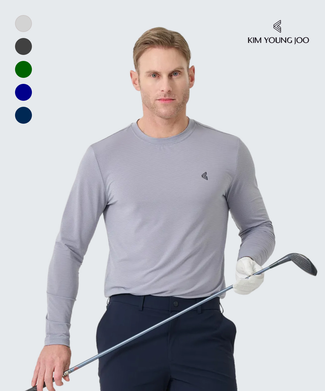 김영주 남성 골프웨어 자카드 라운드 냉감 긴팔 티셔츠