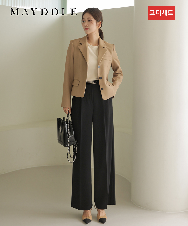 [자켓+바지 코디세트] 크리버튼 테일러드자켓 + 레터링밴딩 핀턱 와이드슬랙스 / 세트룩 세트코디 상하셋업 하객룩 출근룩 포멀룩 직장인룩 오피스룩 자켓슬랙스세트 정장셋업 가을상하룩