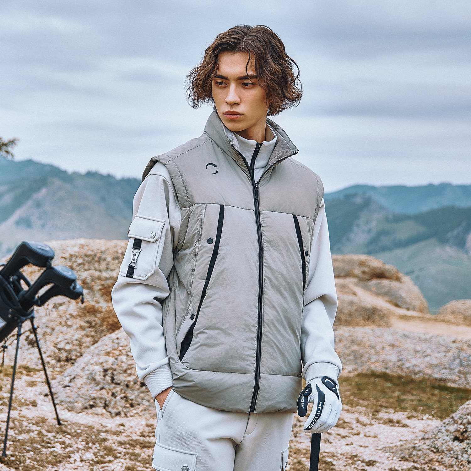 남성 이단포켓 구스다운 퀼팅 베스트 스톤그레이