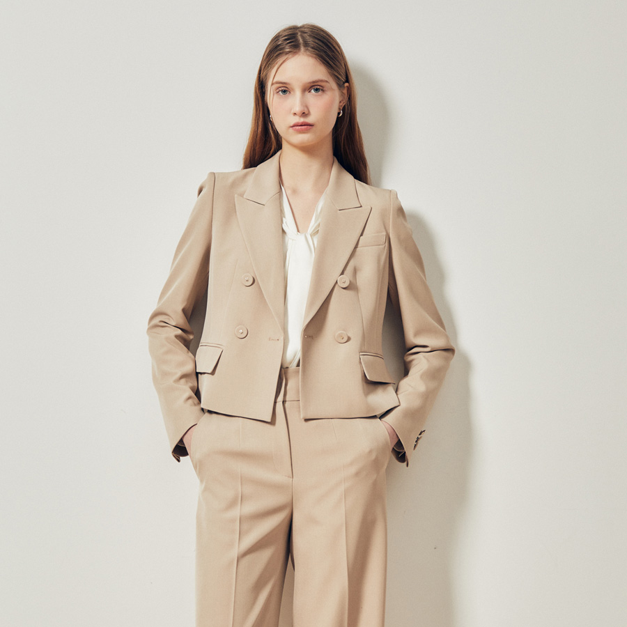 (JJ지고트) 피크드 라펠 더블 크롭 재킷 GR3A0JK161