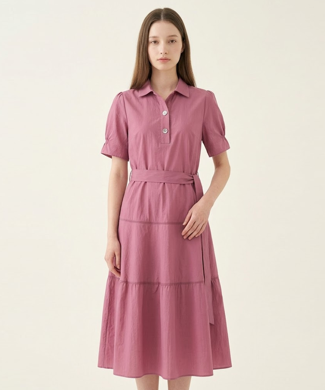 셔링 디테일 버튼업 롱 원피스 (SIOAG0586)