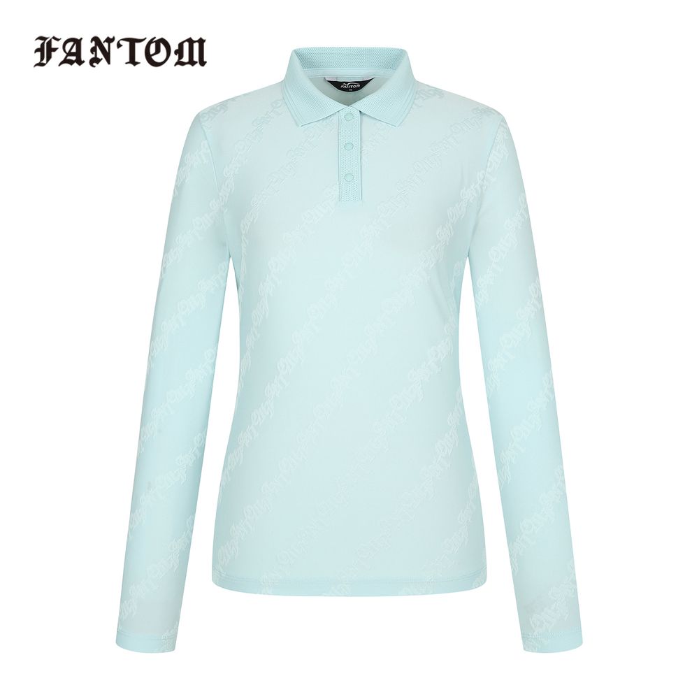 여성 사선 로고 자가드 카라 긴팔티셔츠