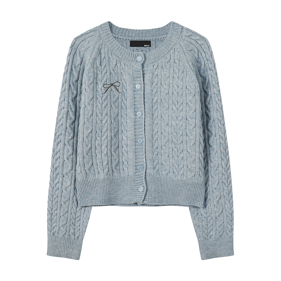 여성 리본 꽈배기 라운드 가디건