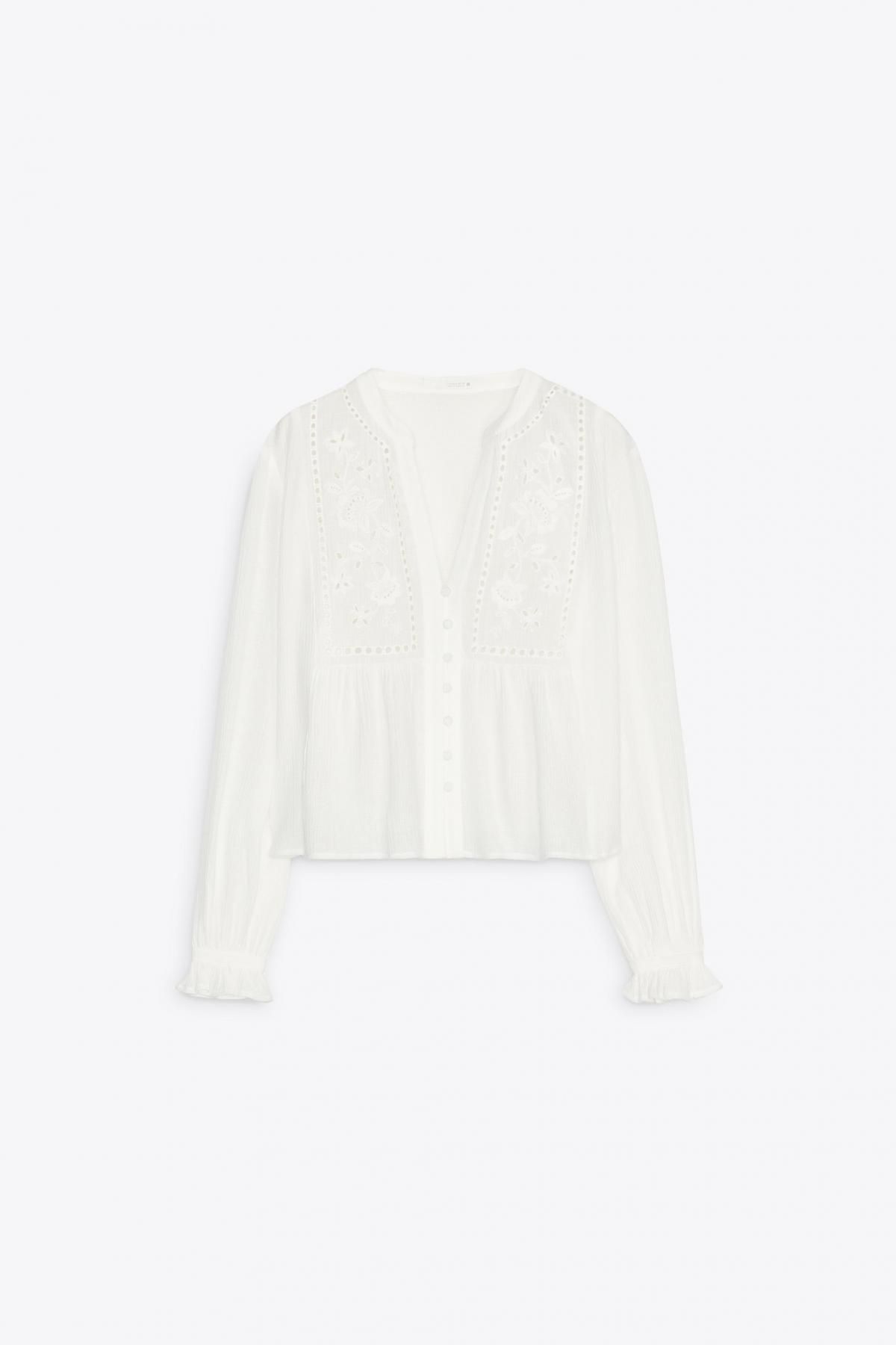 자라 크롭 레이스 컷워크 블라우스 8741/022/250 WHITE