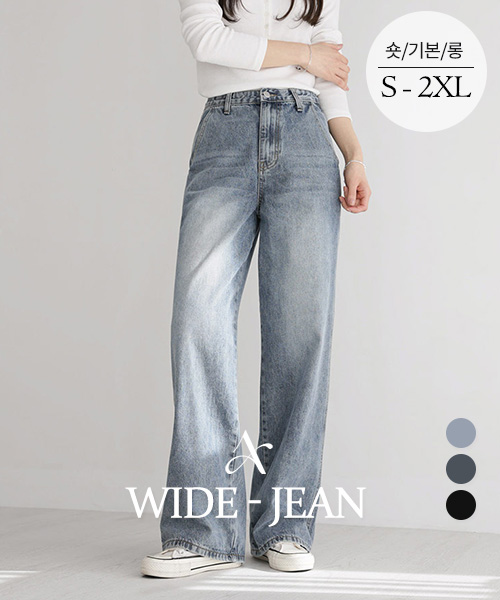 [딱맞진No.3] 절개 인밴딩 와이드 데님 팬츠 3컬러_264354