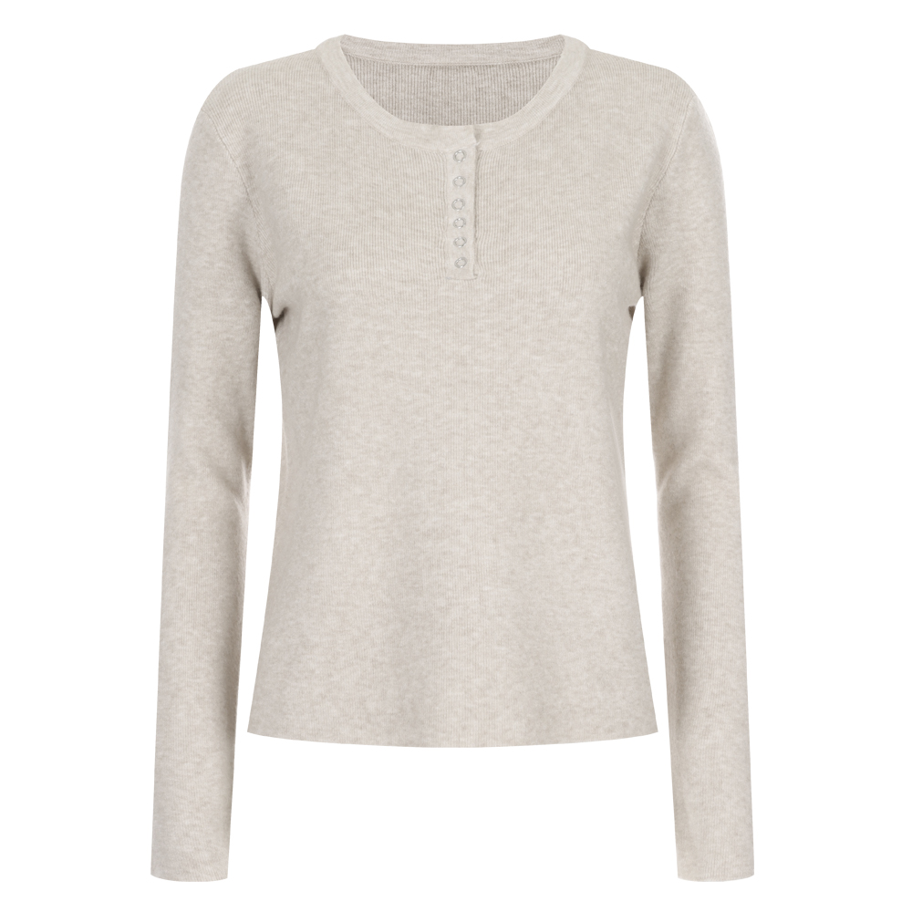 [샵앤] 여성 라운드넥 반오픈 스냅단추 스판 이너겸 데일리 니트 티셔츠 NARU-WKN-20351-베이지