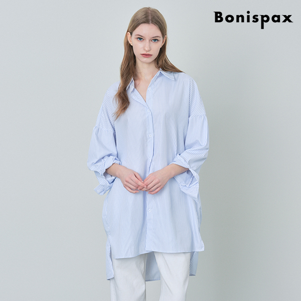스트라이프 밑단 트임 롱 셔츠 (XP1BA011L0)