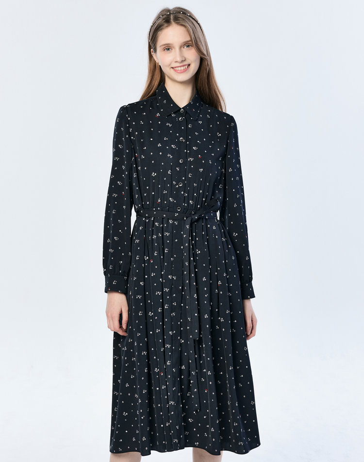 [헤지스 여성]폴리 플라워 긴팔 원피스 네이비_HSDR5A103N2