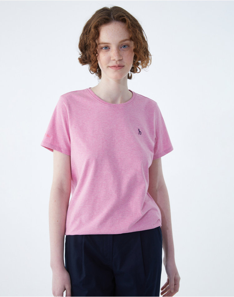 [헤지스 여성]핑크 멜란지 면 반팔티셔츠_WSTS4B330P2