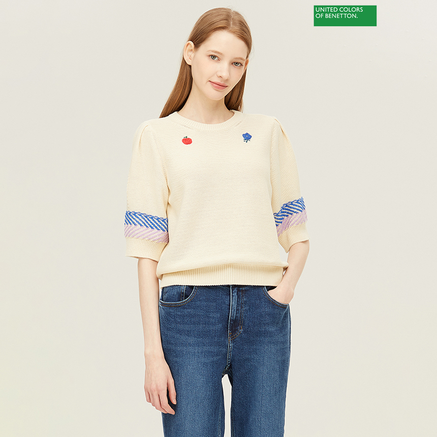 베네통 소매 헤링본 반팔 니트 BAKP52431