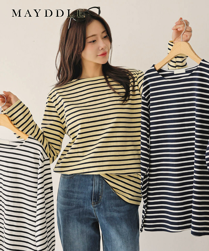 [면100]세탁후그대로 스트라이프 티셔츠 / 라운드넥 줄무늬 루즈핏 코튼 긴팔티 봄코디 소풍 나들이 피크닉룩 벚꽃룩 데일리 딸선물 단체티 기본티 여성베이직티 잔줄티셔츠