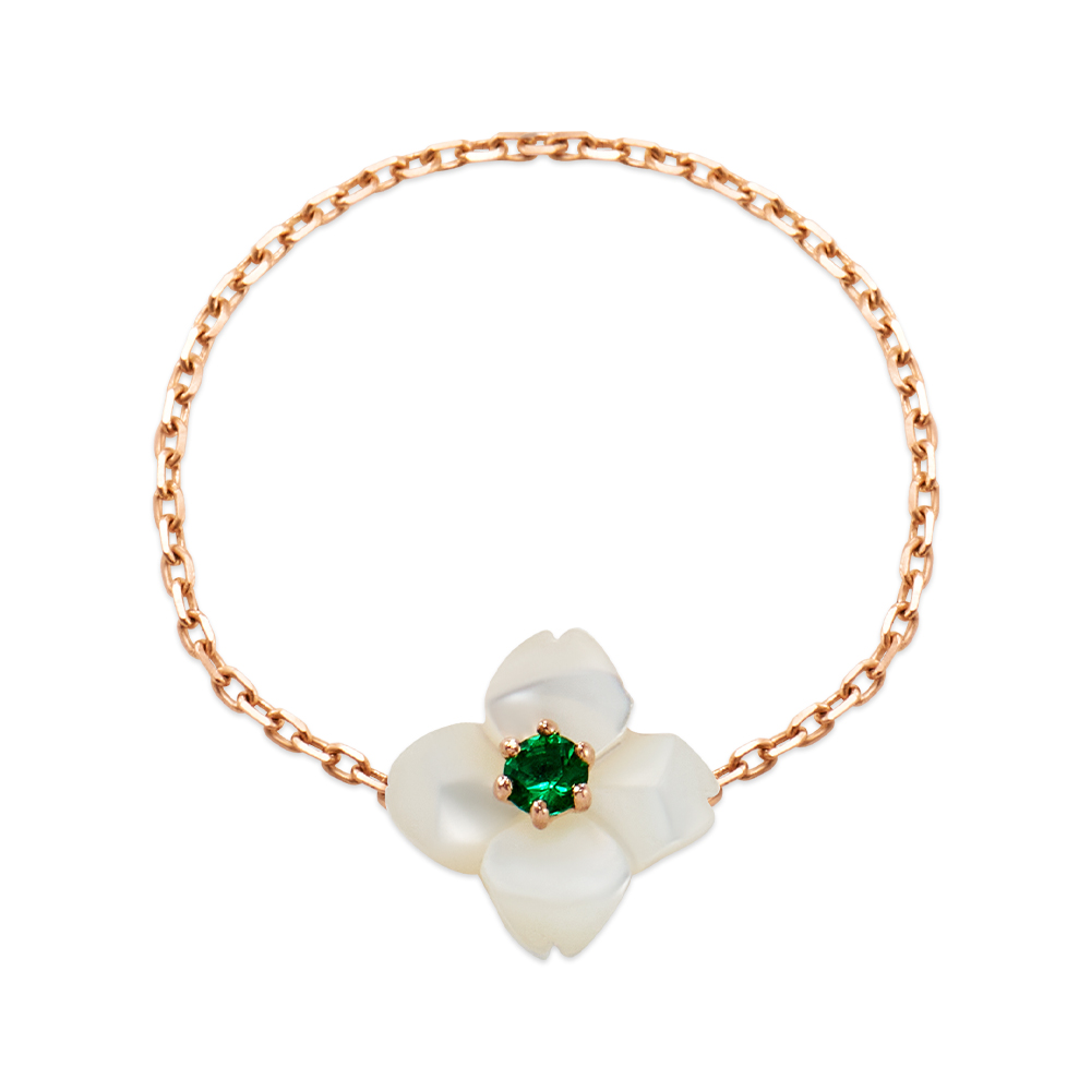 [비앤비골드] 14K 블루메 에메랄드 라일락 자개 체인 반지 MNR41033