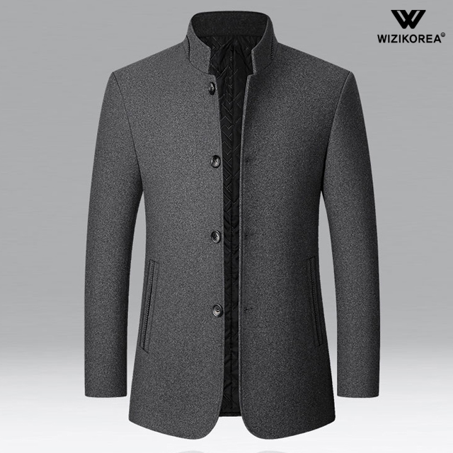남성 슬림핏 스탠드카라 하프 모직 코트 봄 가을 정장 WI006CT
