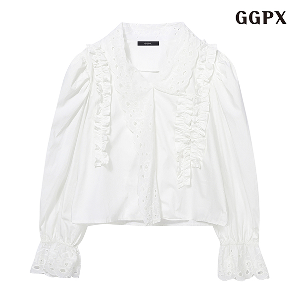 프릴 레이스 펀칭 블라우스 (GPABA021D)