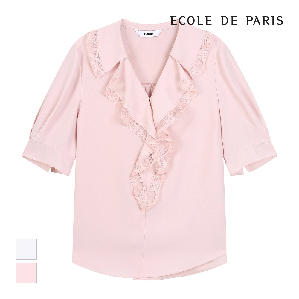 [에꼴드파리] 레이스프릴 반팔 블라우스_CB27WBC037Z