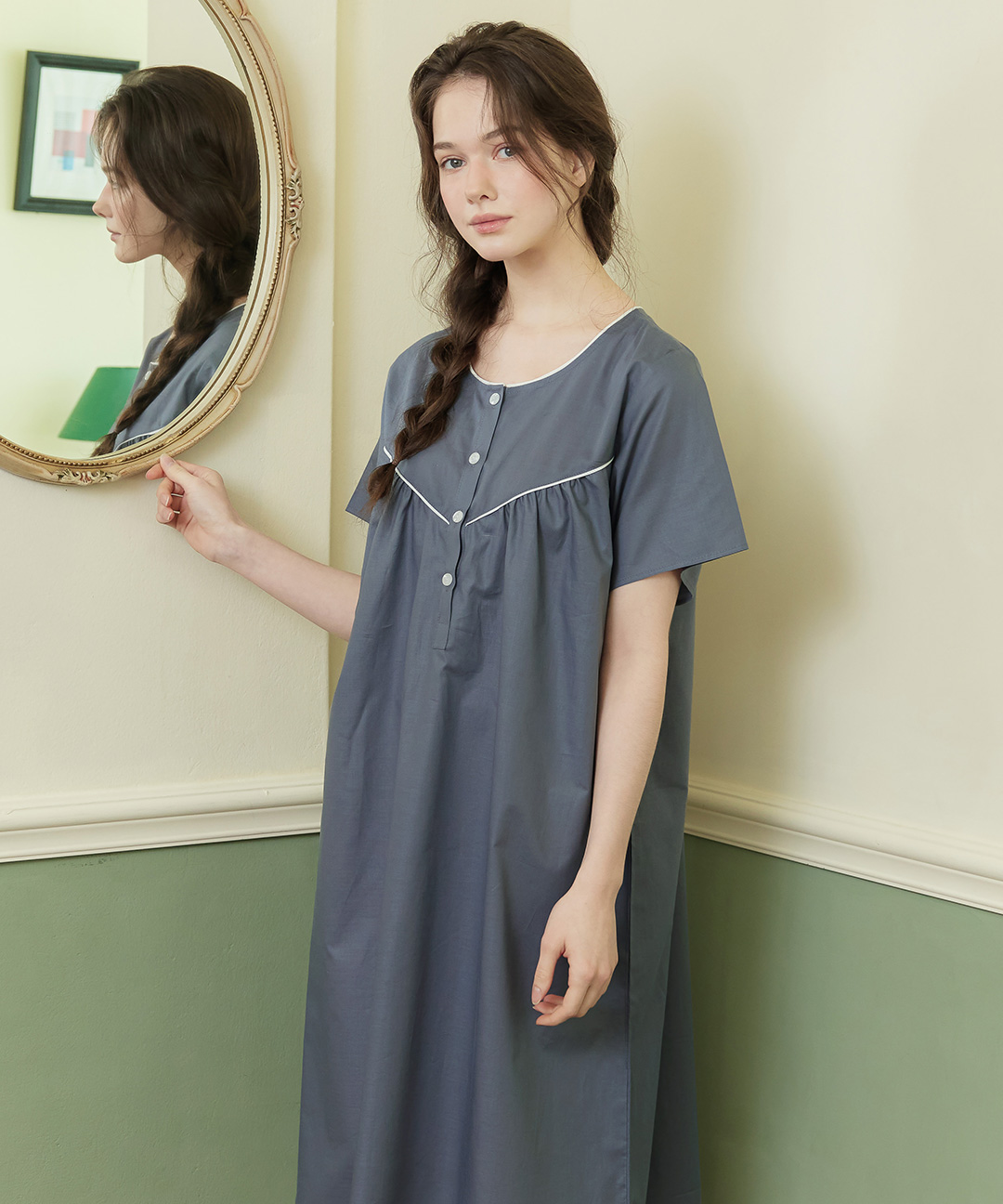 클래식그레이 순면 여성 반팔 빅사이즈 원피스 잠옷