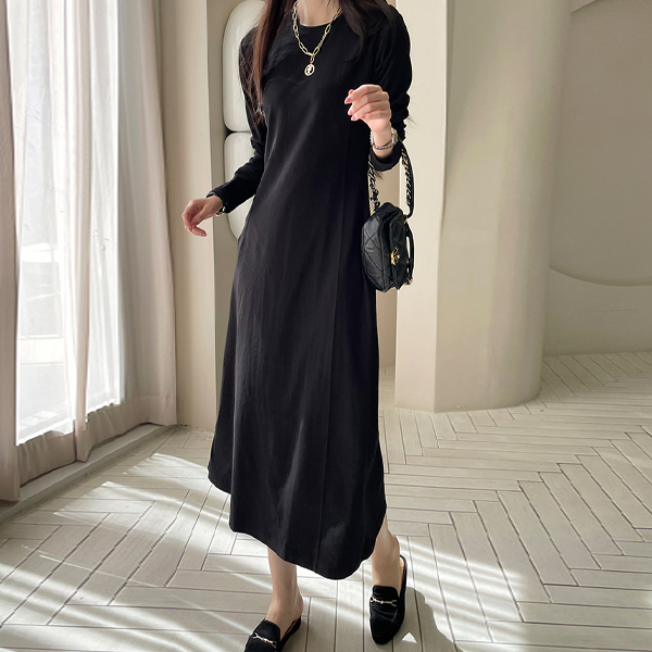(자체제작)(FREE/L)블랙픽 라인 원피스