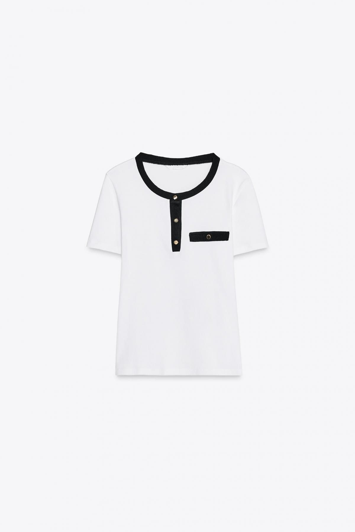 자라 배색 테크니컬 슬림핏 라운드넥 반팔 티셔츠 5644/214/250 WHITE