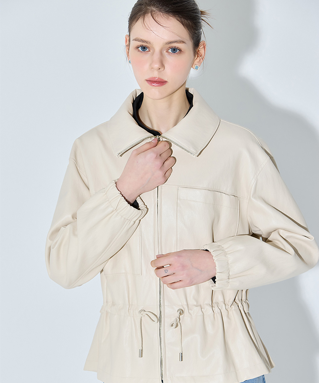 [쉬즈미스(SHESMISS)] 고퀄리티 피치 레더 스트링 재킷 (택가격: 398000원)