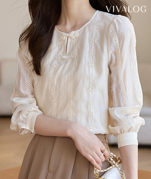[비바로그] 벤지 플라워 자수 포인트 블라우스