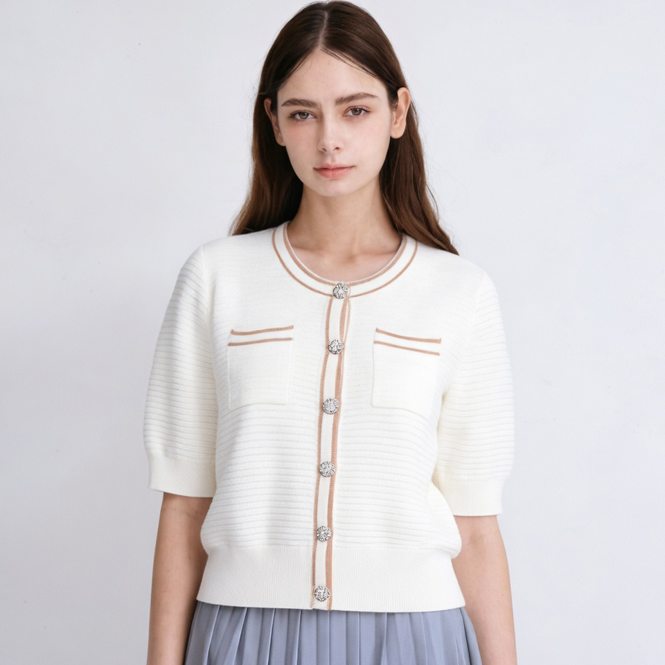 (아날도바시니) 자카드 반팔 가디건(AW06KC42W)