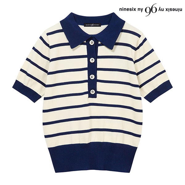 배색 카라 반팔 니트 (NP2KT003L0)