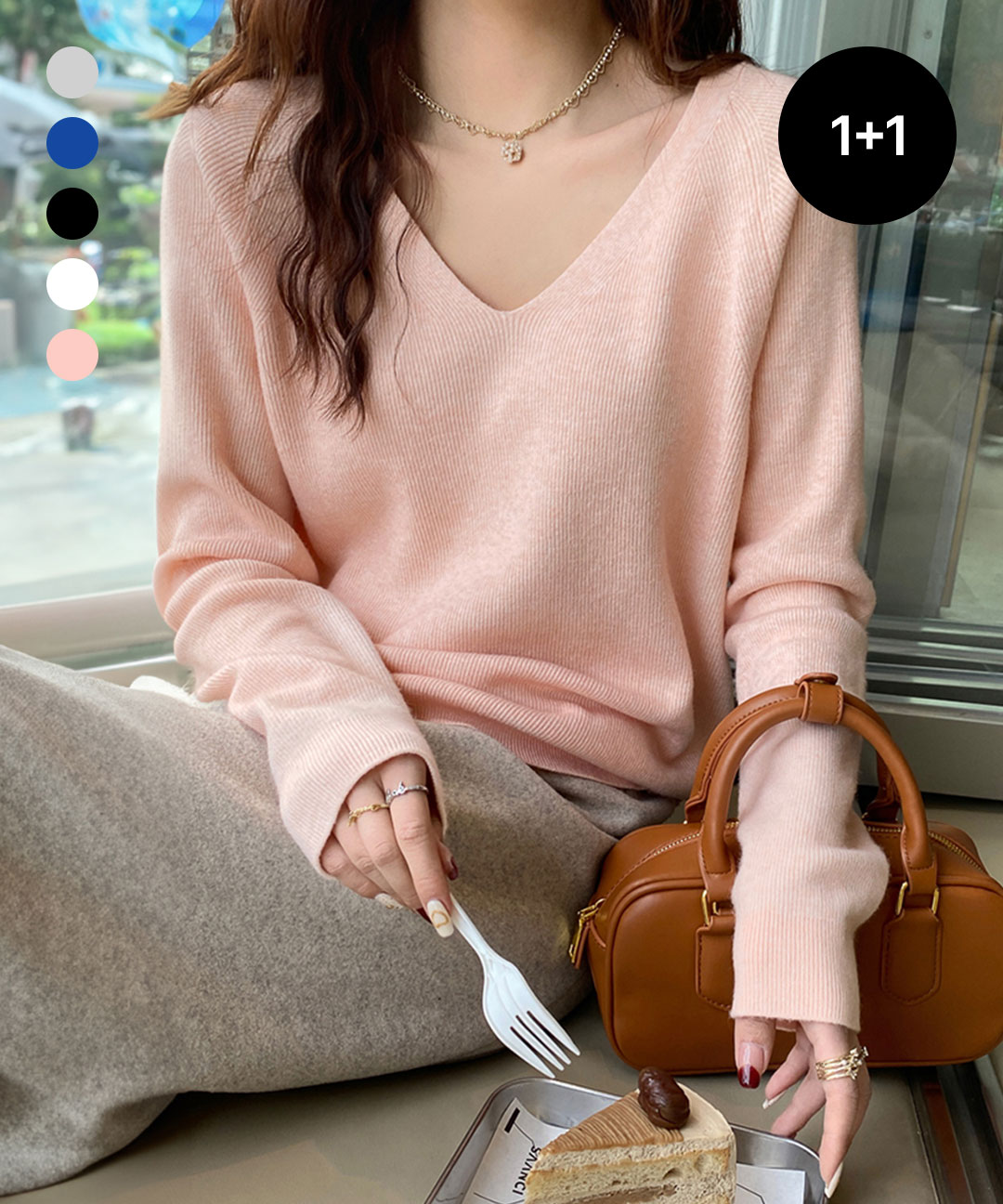 [1+1] KARRA 골지브이넥레글런니트_A5S0419_SET