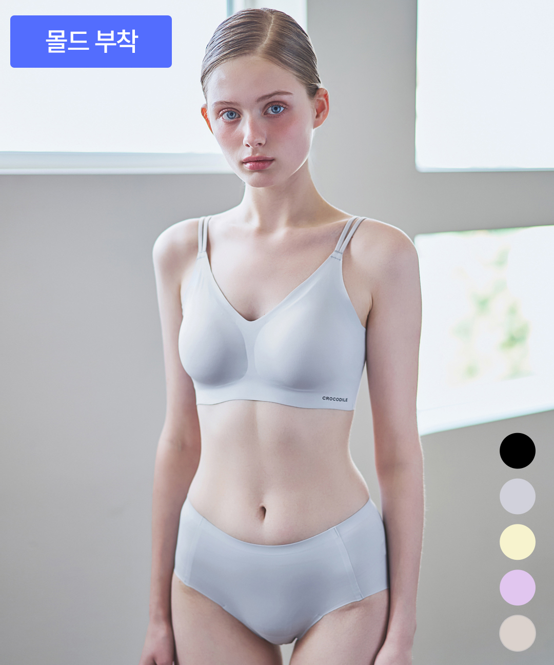 [상하세트] 라이크라 인견쉘론 몰드부착 더블스트랩 브라+팬티 2종세트 택1