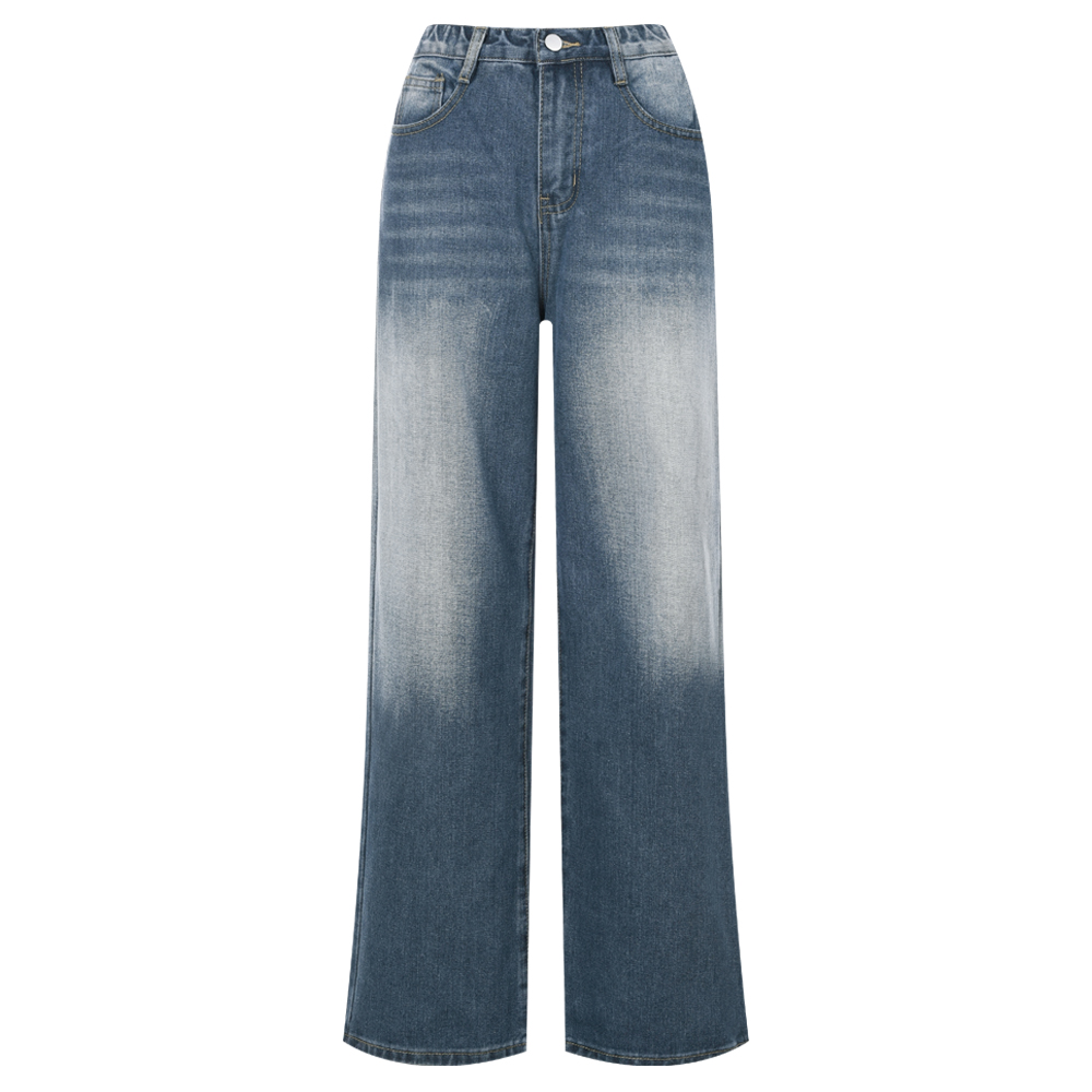 [샵앤] 여성 히든밴딩 6사이즈 3기장 와이드 진청 워싱 청바지 INT-WPT-20538-숏