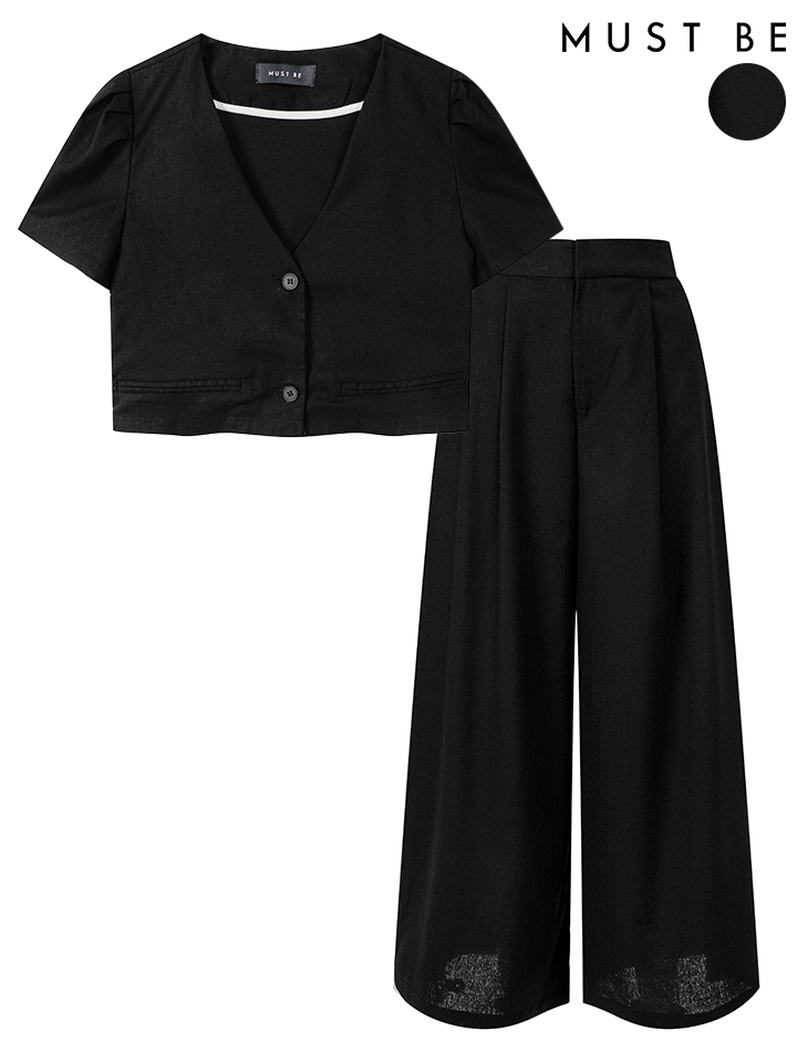 여성 크롭 반팔자켓 뒷밴딩 와이드팬츠 셋업