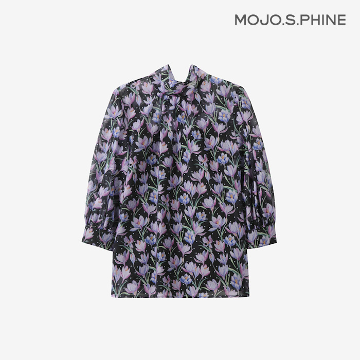 [모조에스핀] 리본넥 플라워패턴 쉬폰 블라우스 BK_S252MSC133