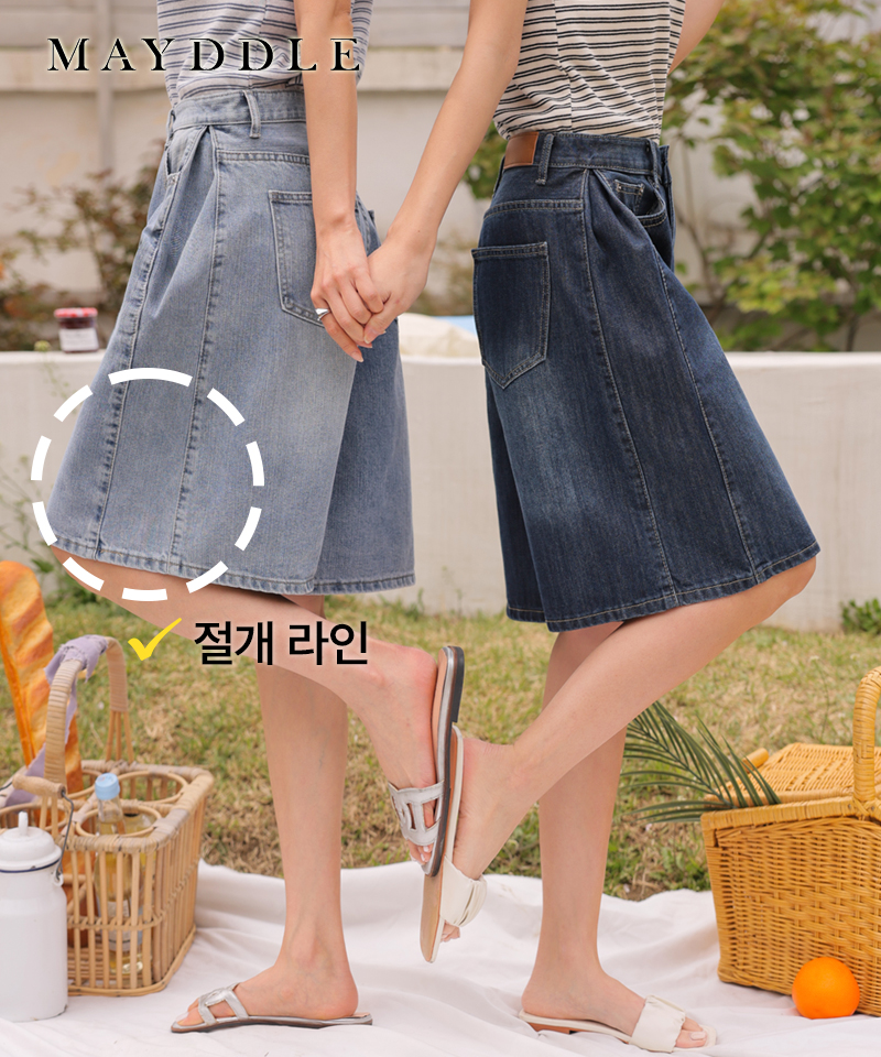 [부분오늘출발] [영상핏]하체보정 버뮤다폴딩 데님팬츠 / 플레어 A라인 치마바지 스판없는 워싱 절개라인 5부 통통녀 탄탄 편한 청반바지 여름 휴가 바캉스 여행 진청 연청 장마룩 장마 비올때 딸선물