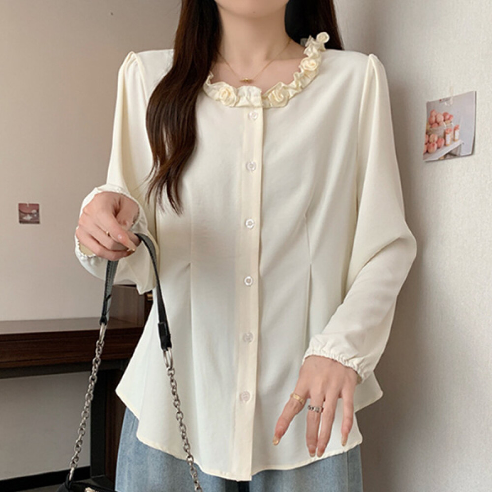 [나바바] NB2482 러블리 프릴 라운드넥 긴팔 블라우스