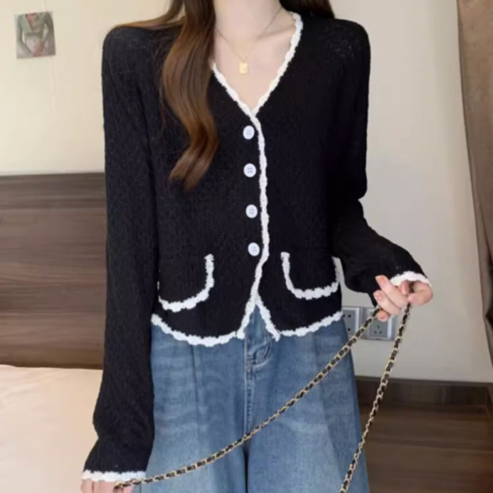[나바바] NK2864 클래식 라인 배색 긴팔 가디건