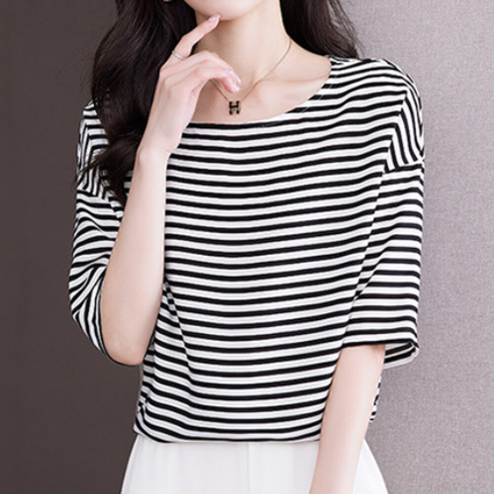 [나바바] NT838 캐주얼 단가라 루즈핏 5부 티셔츠