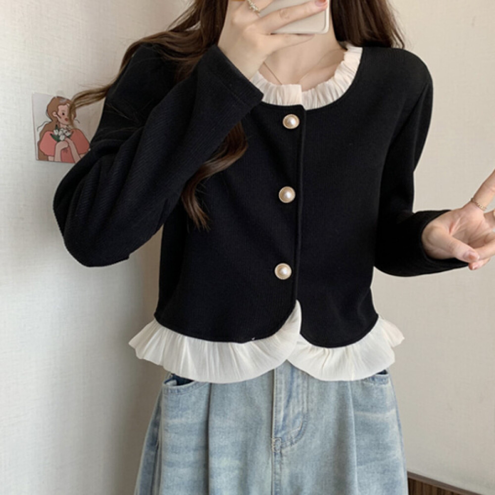 [나바바] NC330 빈티지 프릴 포인트 긴팔 크롭 가디건