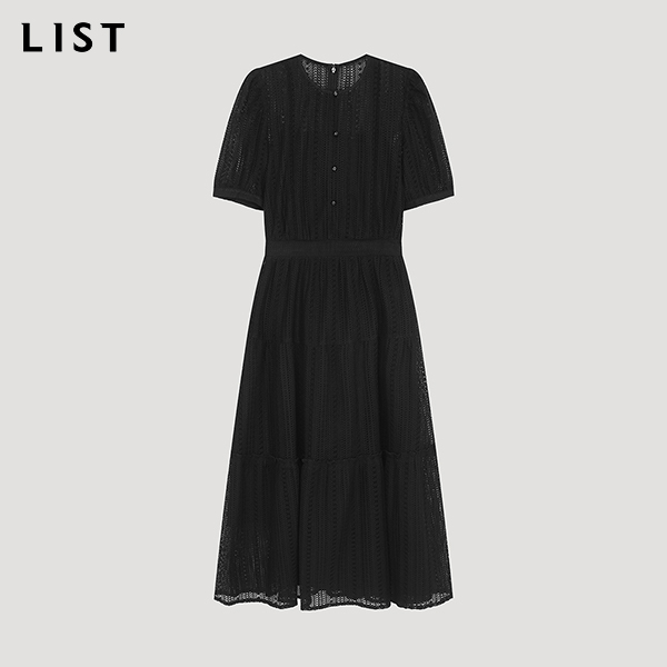 [여름가격인하] 펀칭 레이스 티어드 원피스_TWWOPP62180_BK
