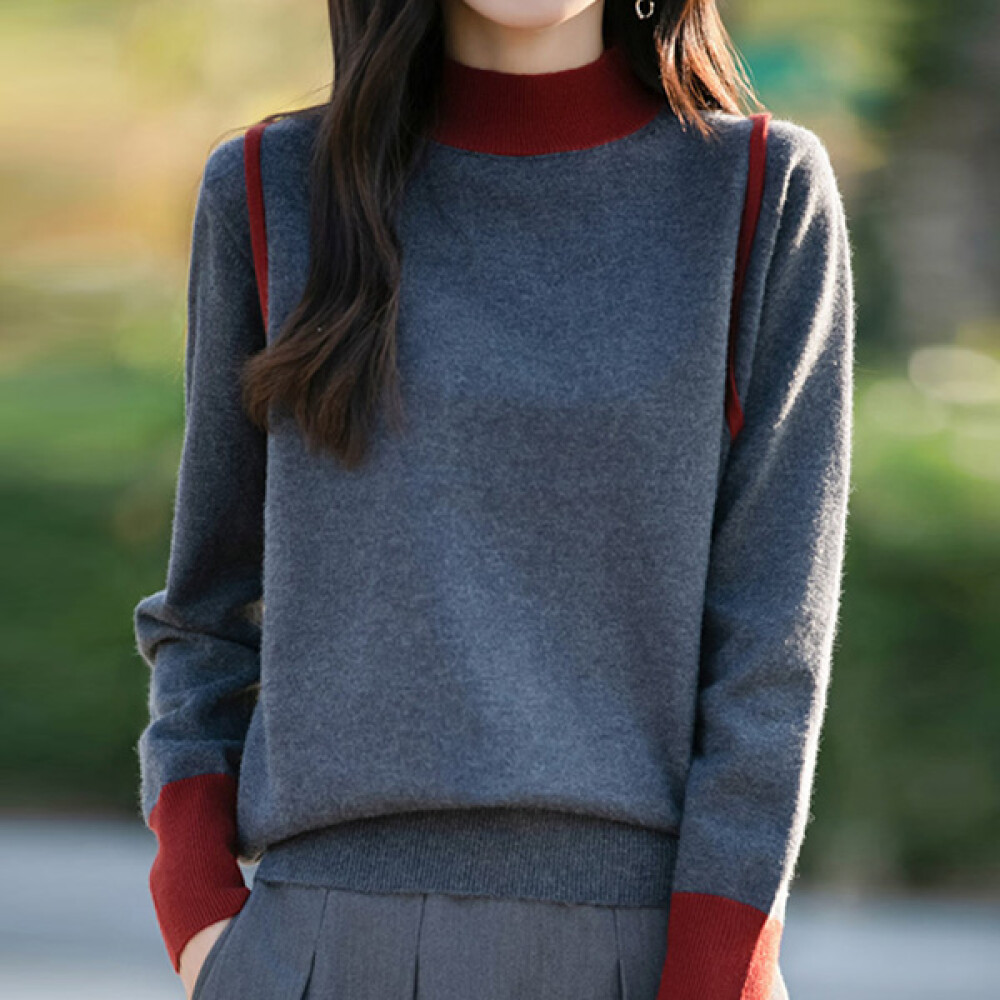 [나바바] NK2721 데일리 배색 반폴라 긴팔 니트티