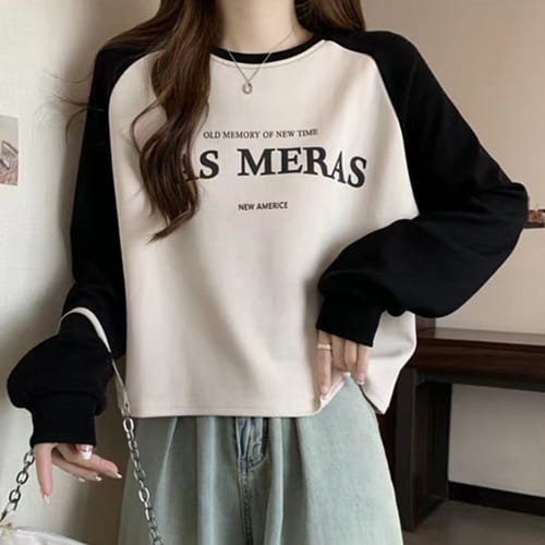 [나바바] NT1316 레터링 나그랑 크롭 긴팔 맨투맨