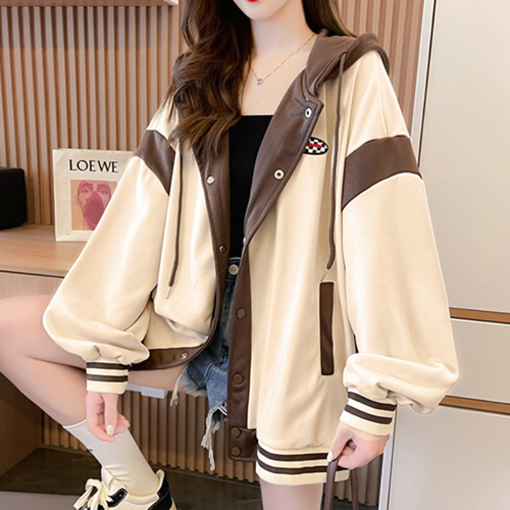 [나바바] NC142 여성 배색 루즈핏 긴팔 후드 가디건