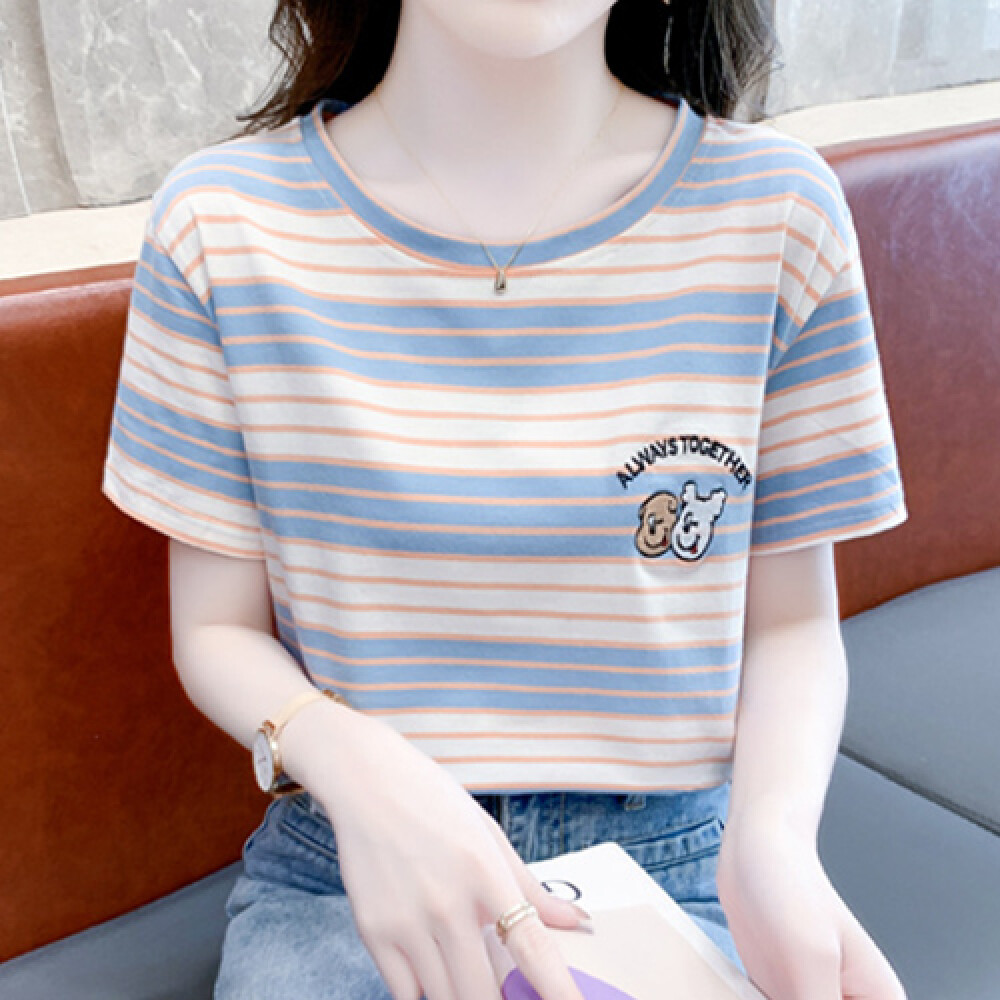 [나바바] NT1879 단가라 캐릭터 자수 반팔 티셔츠