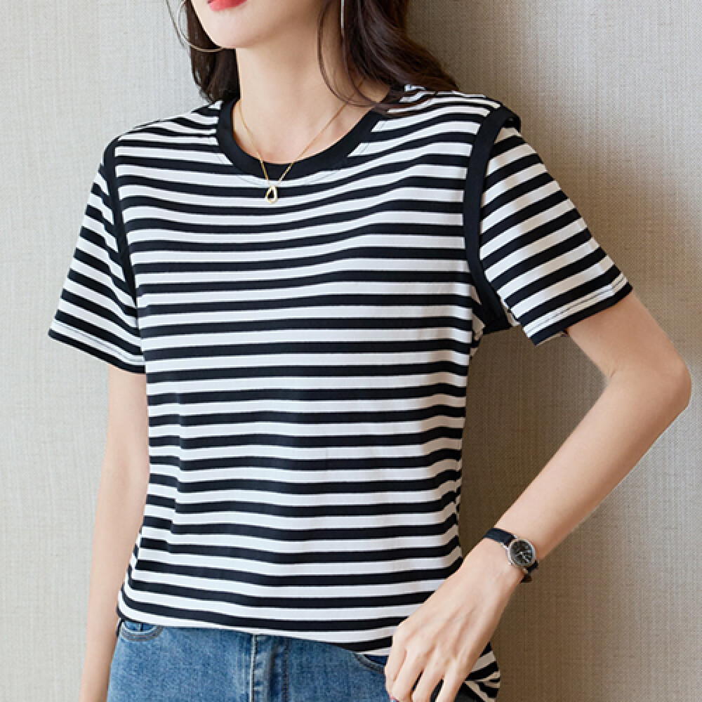 [나바바] NT1444 캐주얼 단가라 라운드넥 반팔 티셔츠