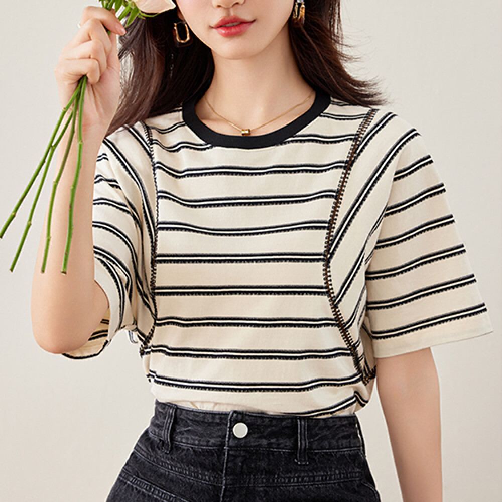 [나바바] NT1712 캐주얼 스티치 단가라 반팔 티셔츠